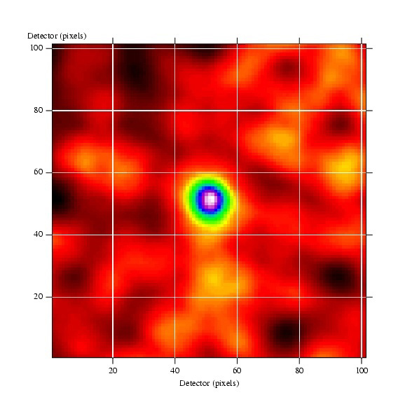 This image was obtained during the INTEGRAL SPI calibration campaign in April 2001. The calibration was carried out on the night of 18-19 April using a sodium-24 source. This image of a simulated star-like source produced with the coded mask technique is the first of its kind with such a high angular resolution (less than 2 degrees) and was obtained at 2.75 MeV.