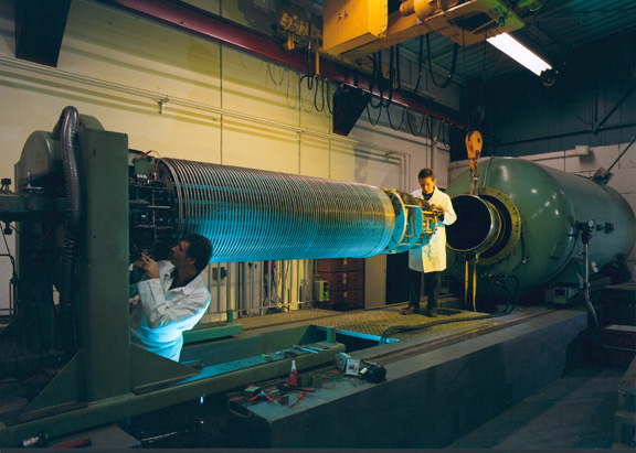 seen during maintenance. Clearly visible are its chamber (right) and the internal potential charging elements.