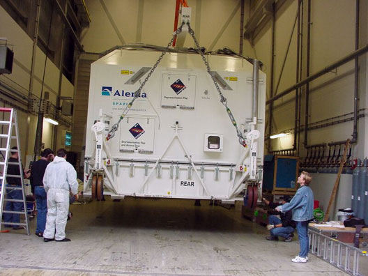 ESA Science & Technology - INTEGRAL payload module container being unloaded