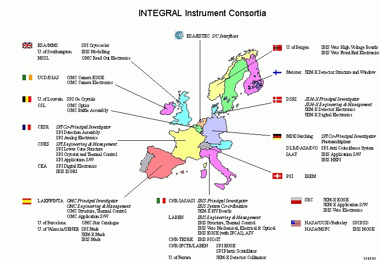 The industrial team producing the many components for the different parts of the INTEGRAL spacecraft was made up of 26 companies located across Europe and one company in the United States.