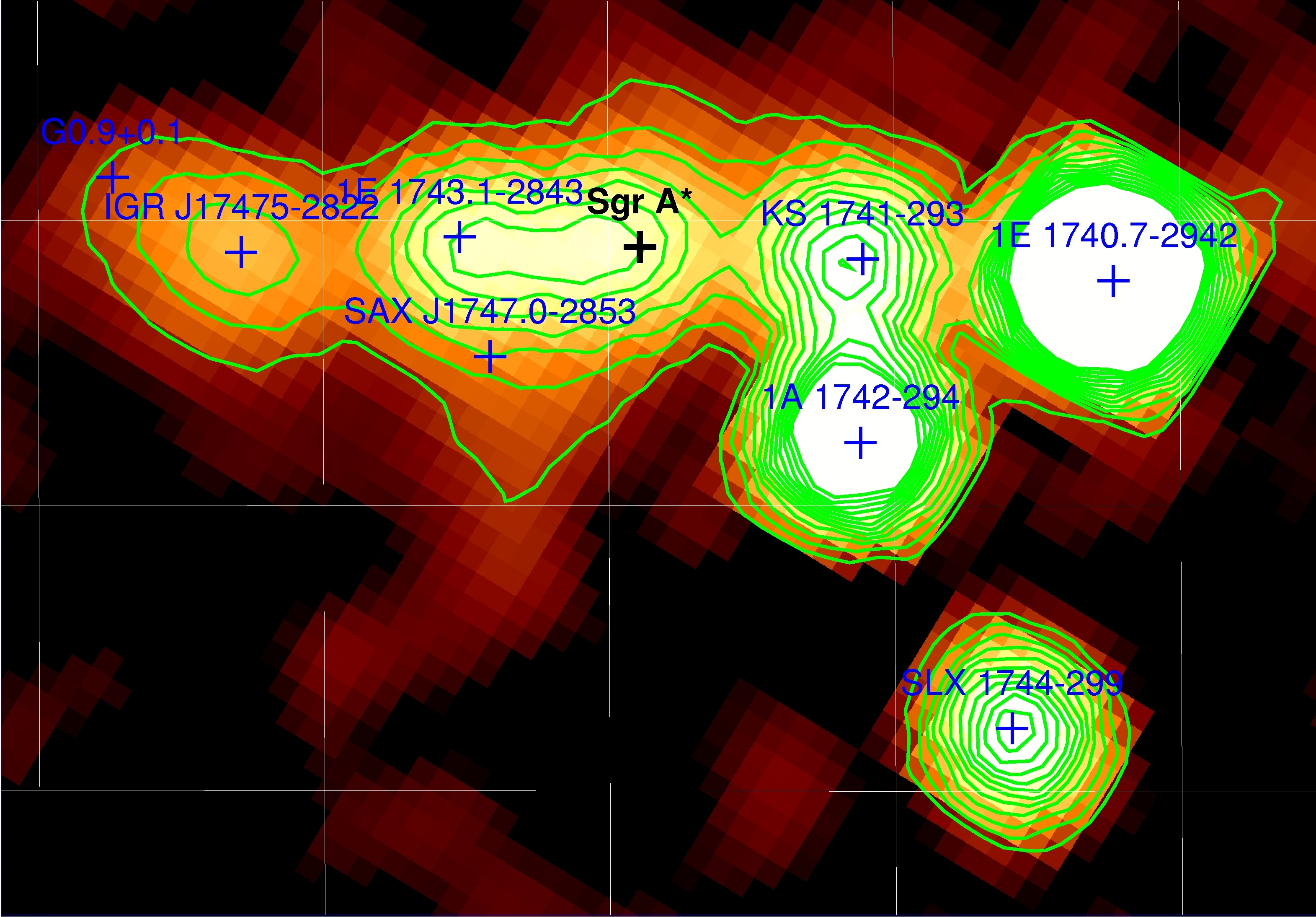 Results of this observation, which also include spectra extracted for the central source for both JEM-X and IBIS/ISGRI are described in a paper by Bélanger et al. (see also A Persistent High-Energy Flux from the Heart of the Milky Way). The main result is that the central source near Sgr A* is not a point source, but likely a diffuse, but compact, source. It also shows that the source is faint, but persistent with no variability above 3 sigma.