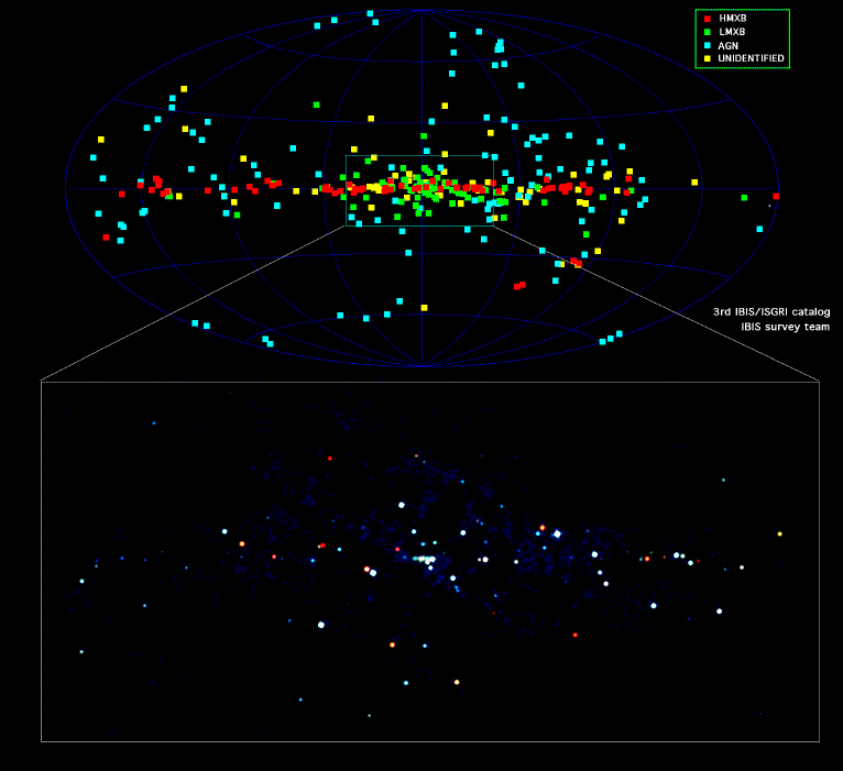 Depicts: Sky map of sources in 3rd IBIS/ISGRI Soft Gamma-Ray Survey Catalogue