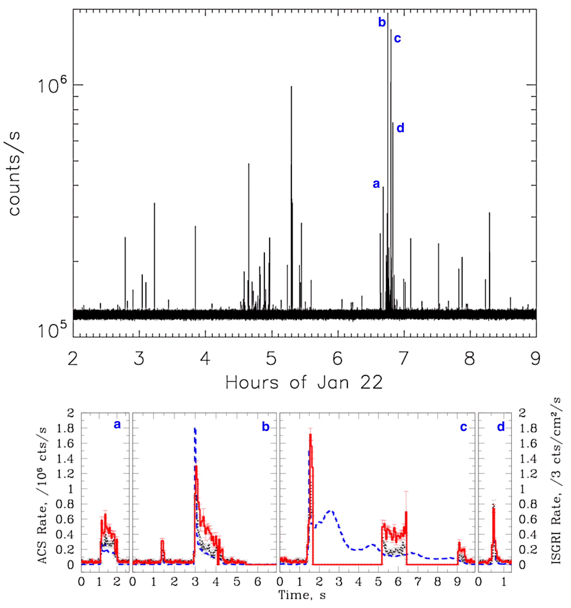 Copyright: ESA/INTEGRAL, upper panel: Mereghetti et al.; lower panel: Savchenko et al.