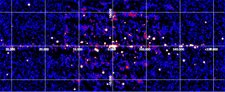 This image is a map of a region near the Galactic Plane, acquired with IBIS/ISGRI on board INTEGRAL, and covering the the 17-60 keV energy band. The total exposure is of about 20 million seconds in the region of the Galactic Centre, the central area of the map. The image shows the results achieved by using a previous sky reconstruction method.