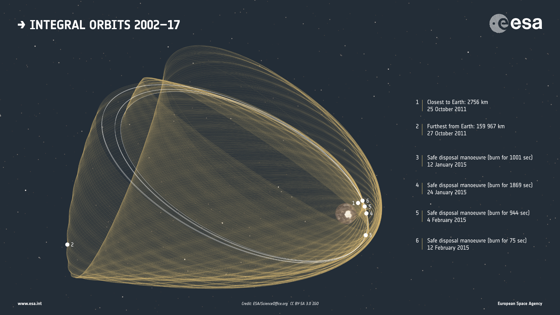 This image depicts the evolution of the orbit of ESA’s INTEGRAL spacecraft from launch on 17 October 2002 up to October 2017.