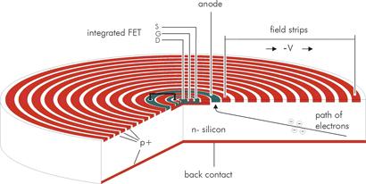 Depicts: Principle of a single drift diode X-ray spectrometer