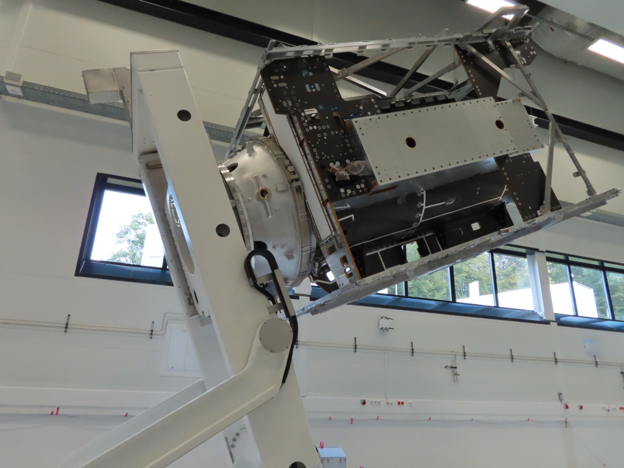 The unpacking of the primary spacecraft structure of ESA's JUICE mission in the airlock at the Arianegroup facility in Lampoldshausen, Germany on 5 September 2019.