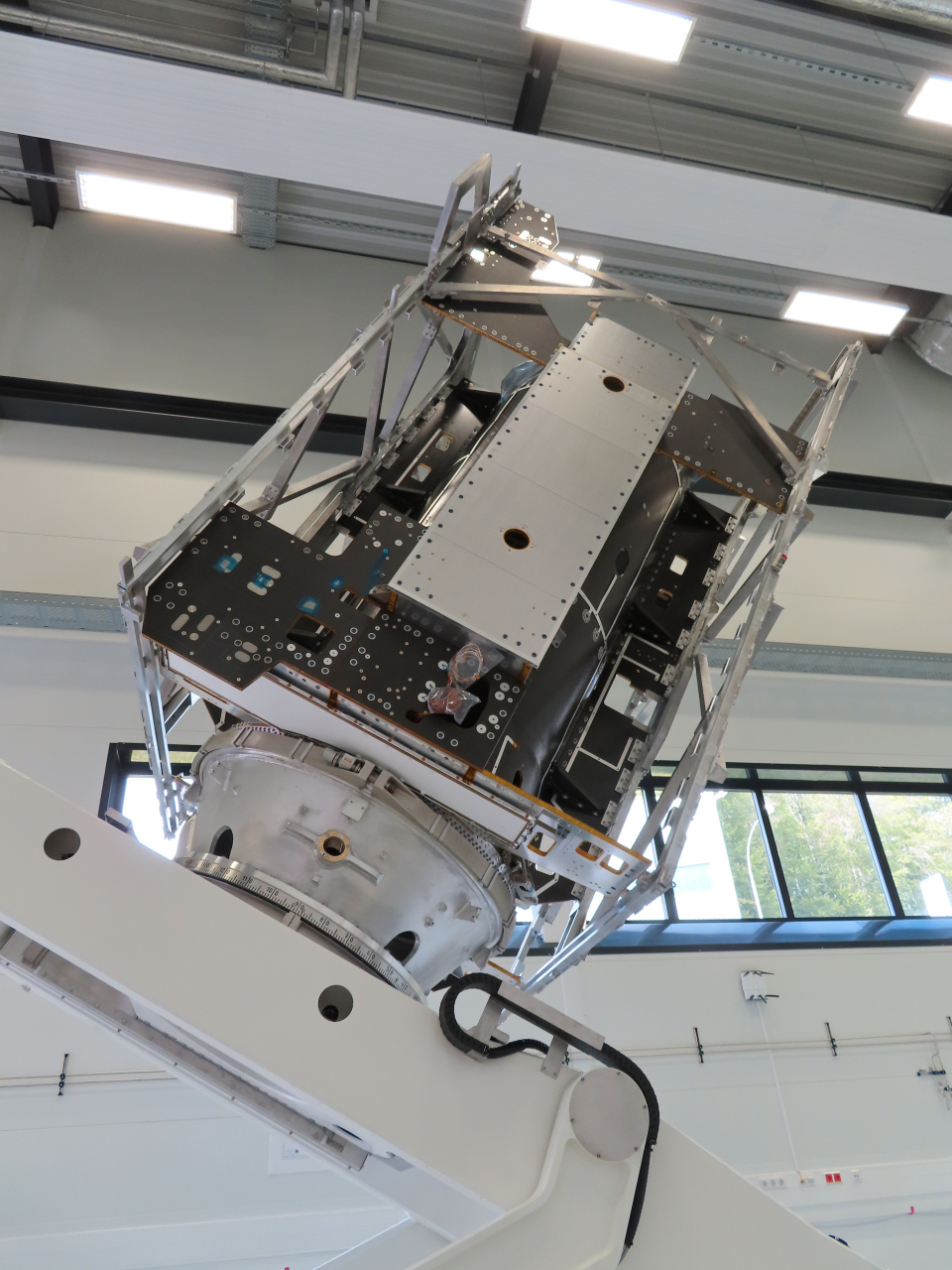 The unpacking of the primary spacecraft structure of ESA's JUICE mission in the airlock at the Arianegroup facility in Lampoldshausen, Germany on 5 September 2019.