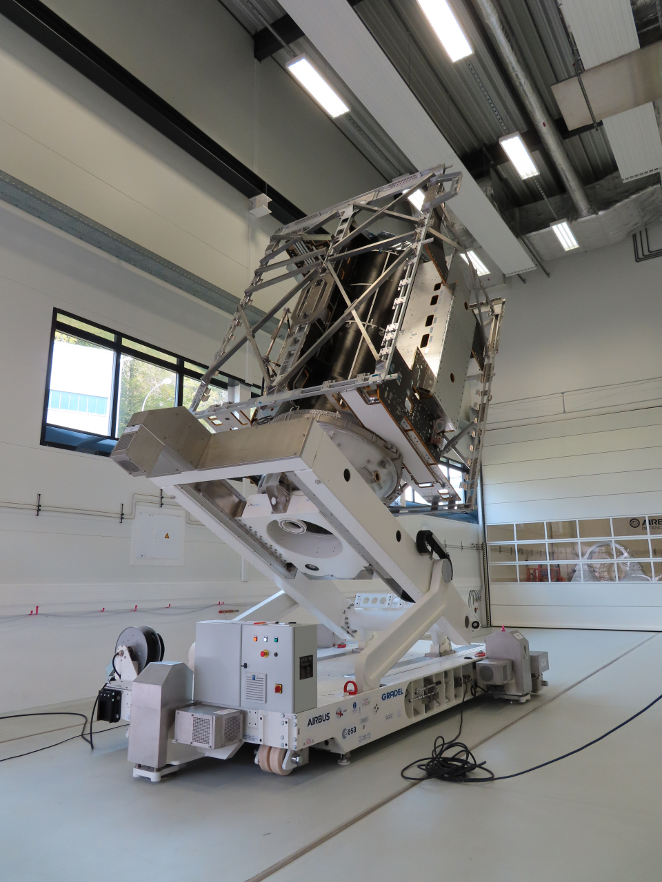 The unpacking of the primary spacecraft structure of ESA's JUICE mission in the airlock at the Arianegroup facility in Lampoldshausen, Germany on 5 September 2019.