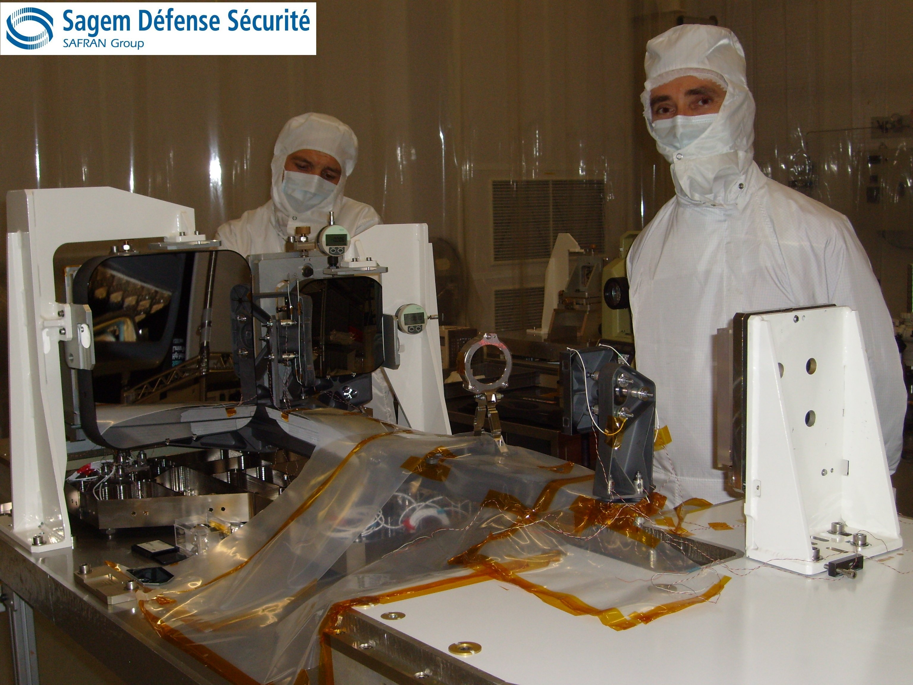 Set-up of NIRSpec's FORE optical system (three mirror anastigmat) during alignment campaign at the Sagem Défense Sécurité facilities. NIRSpec is a wide field, multi-object, near-infrared spectrometer and one of the four instruments that comprise the scientific payload for the James Webb Space Telescope.