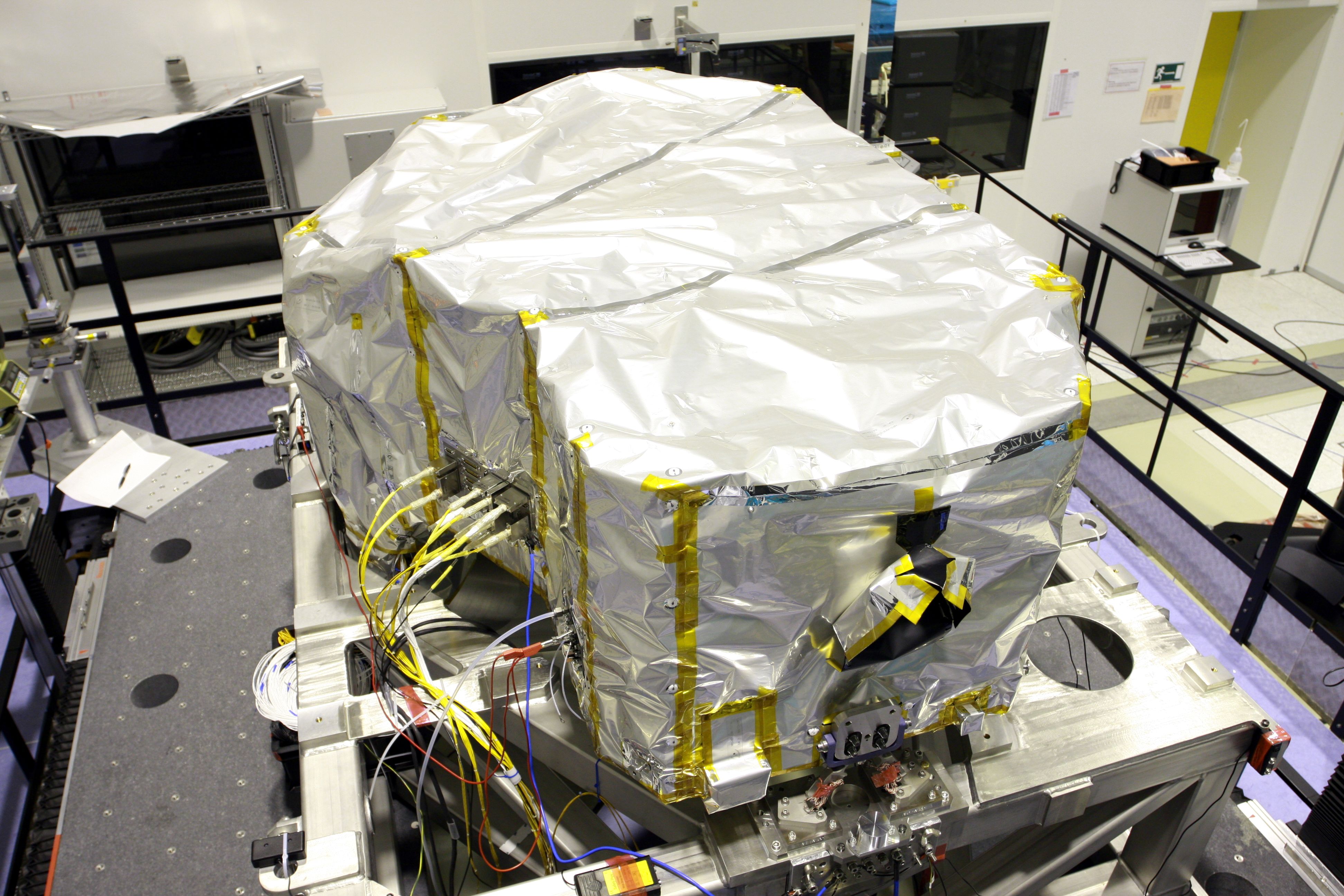 Photo of the NIRSpec prototype demonstration model with its protective cover in place. This is what the integrated flight instrument will look like.