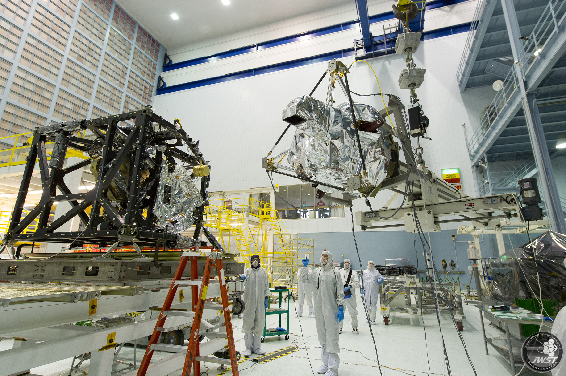 At the Space Systems Development and Integration facility (SSDIF) cleanroom at NASA's Goddard Space Flight Center, engineers carefully move the James Webb Space Telescope's Mid-Infrared Instrument (MIRI) into the Integrated Science Instrument Module (ISIM).