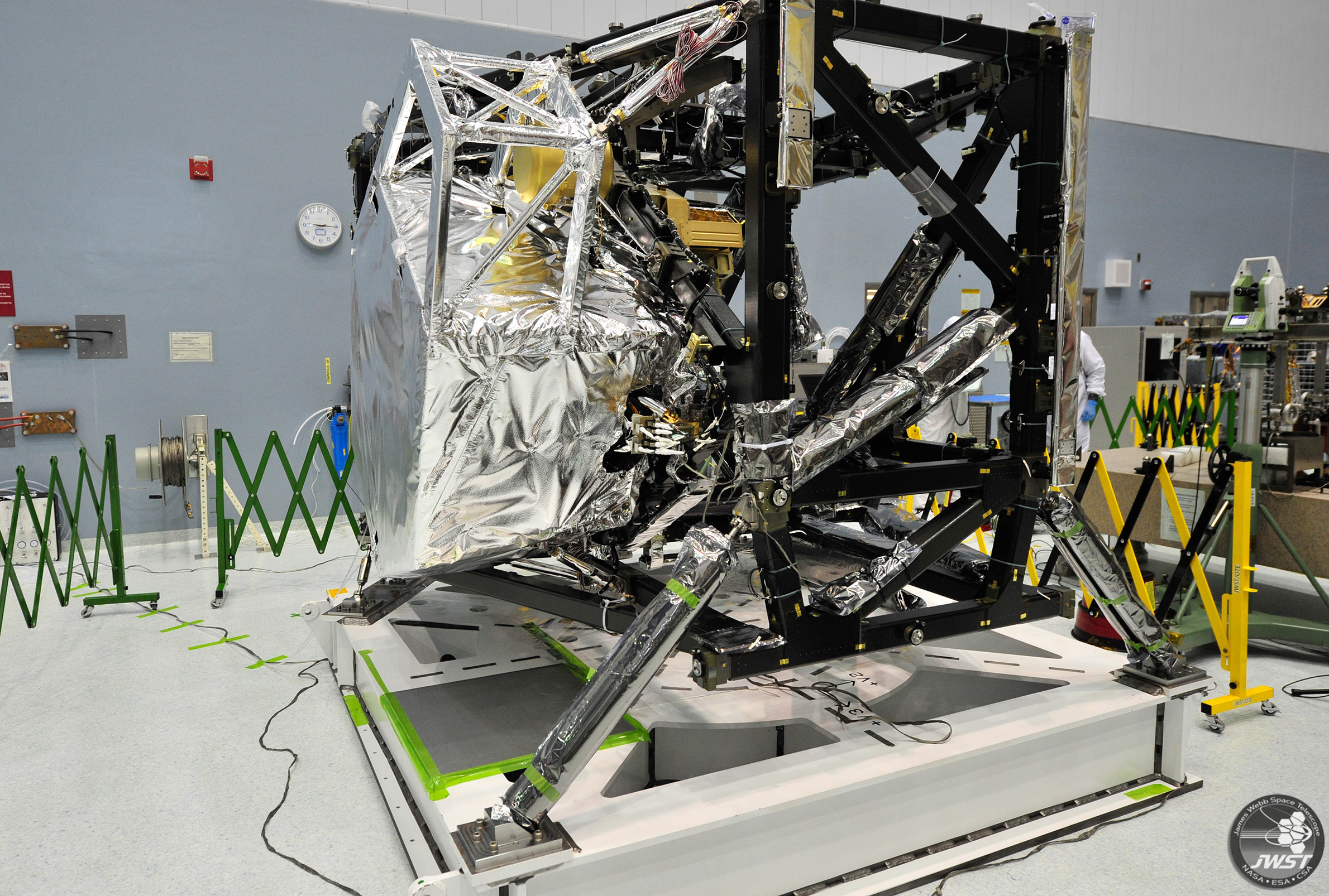 MIRI will detect emission in the mid-infrared range and thermal emission from the Integrated Science Instrument Module (ISIM) structure could interfere with these measurements. For this reason, MIRI is actively cooled to about 7 Kelvin (-266 °C) and wrapped in an aluminized thermal shield. The shield  - the silver structure visible in this photograph - will also help deflect any other stray thermal light. The other three instruments, that all operate in the near infrared wavelength region, and the ISIM - the black structure - will be cooled to about 40K.