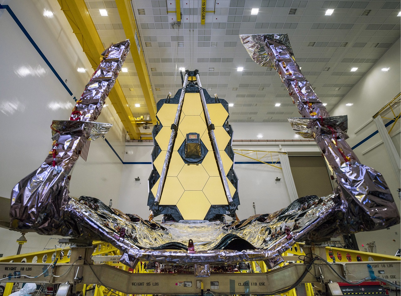 To combine both halves of Webb, engineers carefully lifted the telescope (which includes the mirrors and science instruments) above the already-combined sunshield and spacecraft using a crane. Team members slowly guided the telescope into place, ensuring that all primary points of contact were perfectly aligned and seated properly. The observatory has been mechanically connected; next steps will be to electrically connect the halves, and then test the electrical connections.
