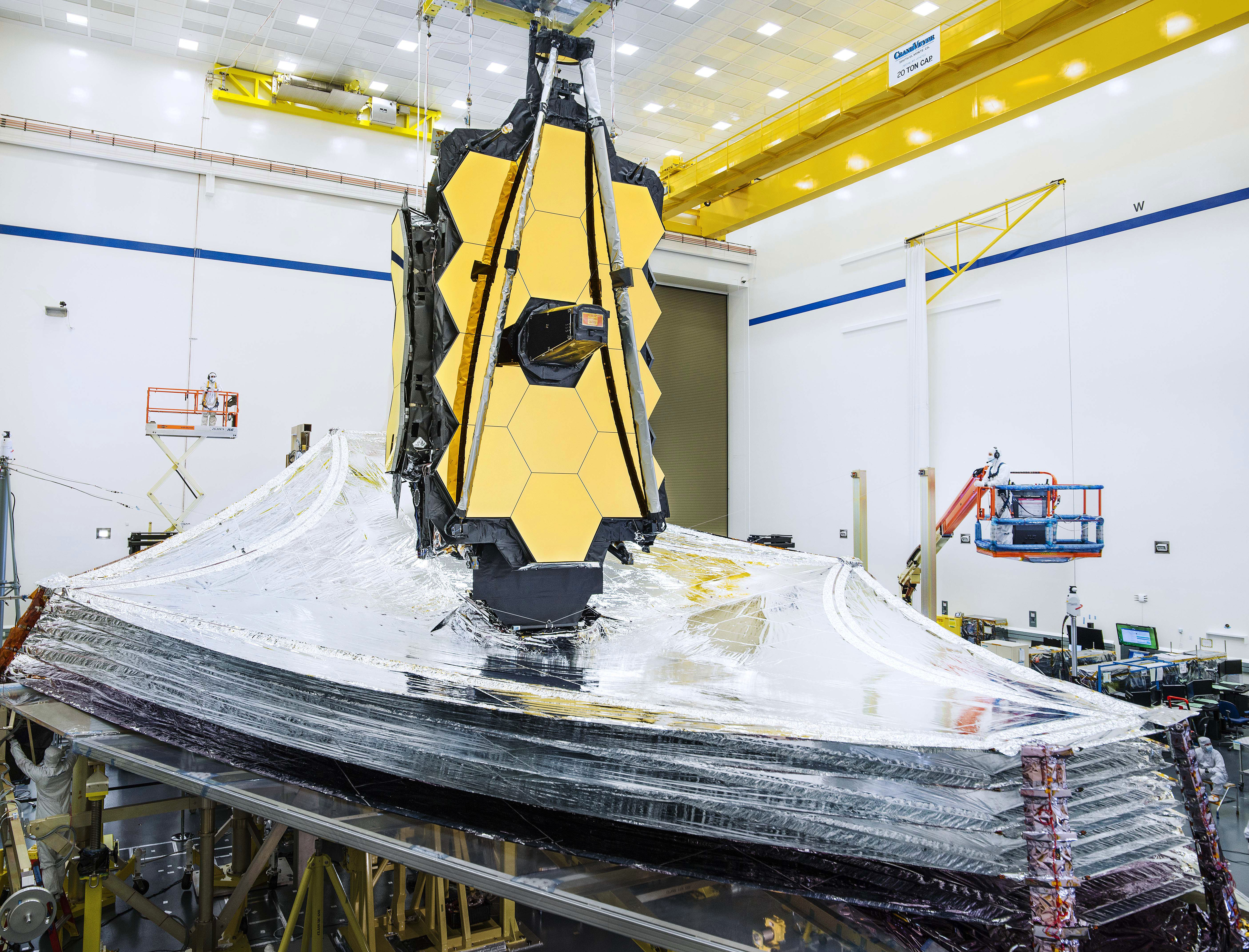 After successfully assembling the entire observatory, technicians and engineers moved on to fully deploy and tension all five layers of its tennis court sized sunshield, which is designed to keep its optics and sensors in the shade and away from interference.