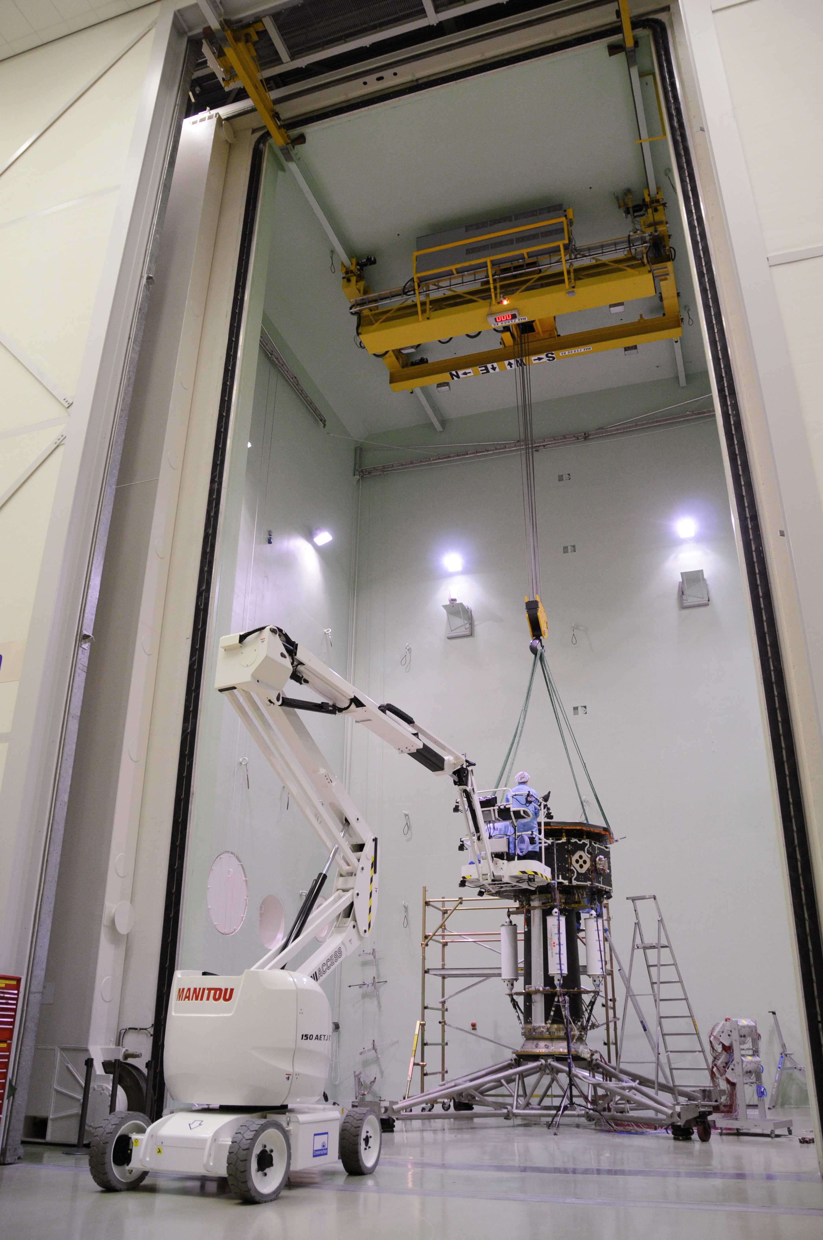 The LISA Pathfinder spacecraft in the acoustic chamber at ESTEC during preparations for system level tests in September 2008
