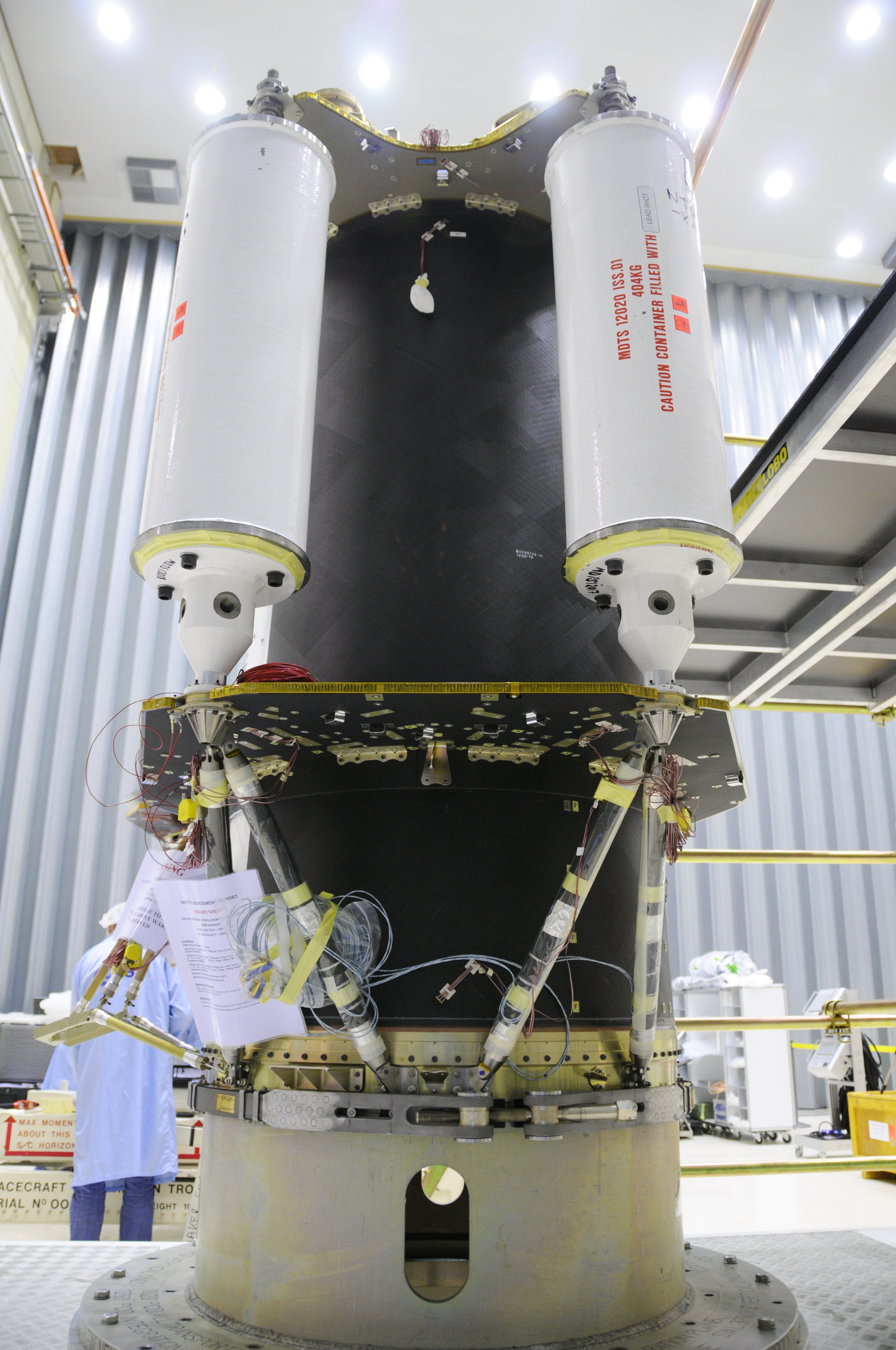 The LISA Pathfinder propulsion module, after installation of the dummy fuel tanks, prior to acoustic tests at ESTEC, The Netherlands, in September 2008.