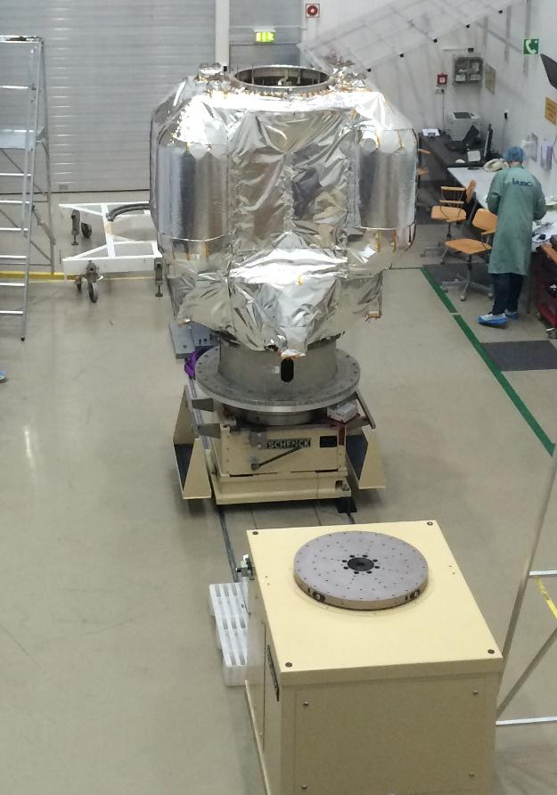 The LISA Pathfinder propulsion module pictured in a cleanroom at IABG, Ottobrunn, Germany, in April 2015. This picture was taken during the mass property measurements.