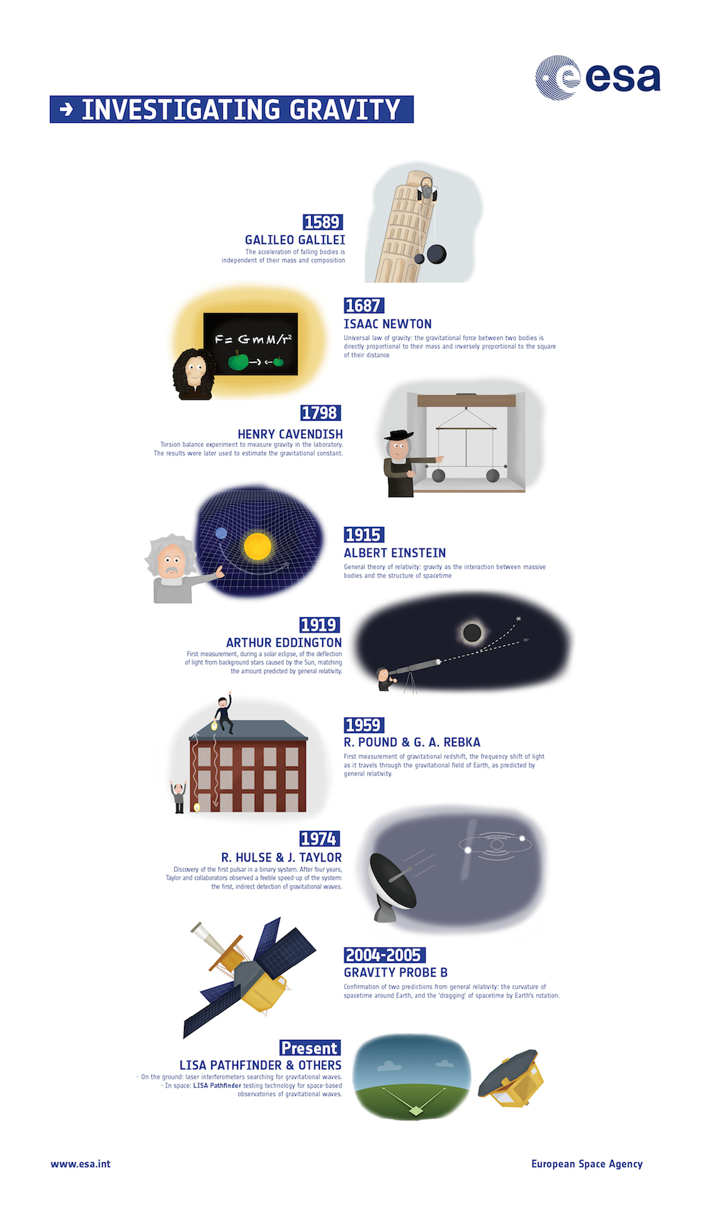 ESA's LISA Pathfinder, a technology-demonstration mission that will pave the way for future observatories of gravitational waves in space, takes its place in the history of great physics experiments investigating the nature of gravity.
