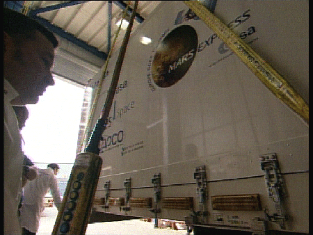 ESA Science & Technology - Staff at Astrium, Stevenage prepare to unload Mars Express