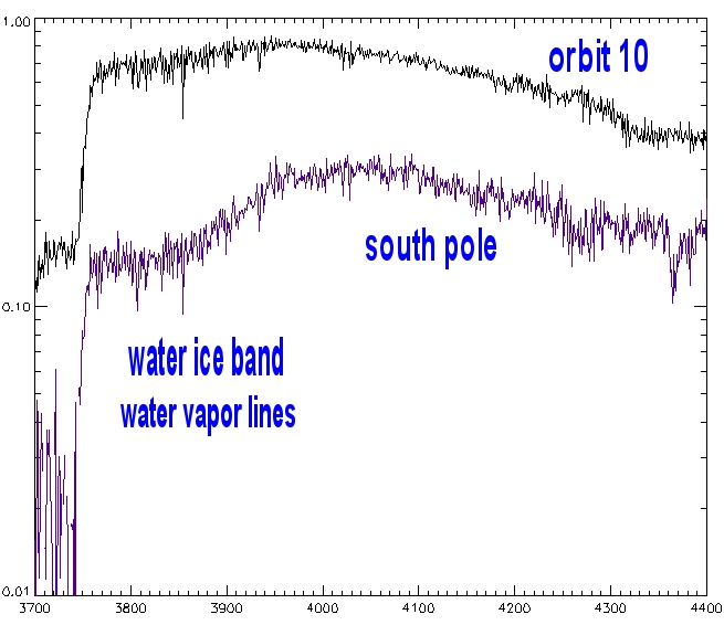 Water ice is most clearly observed between 3750 and 3950 cm-1 in the PFS Spectrum of the southern polar cap.