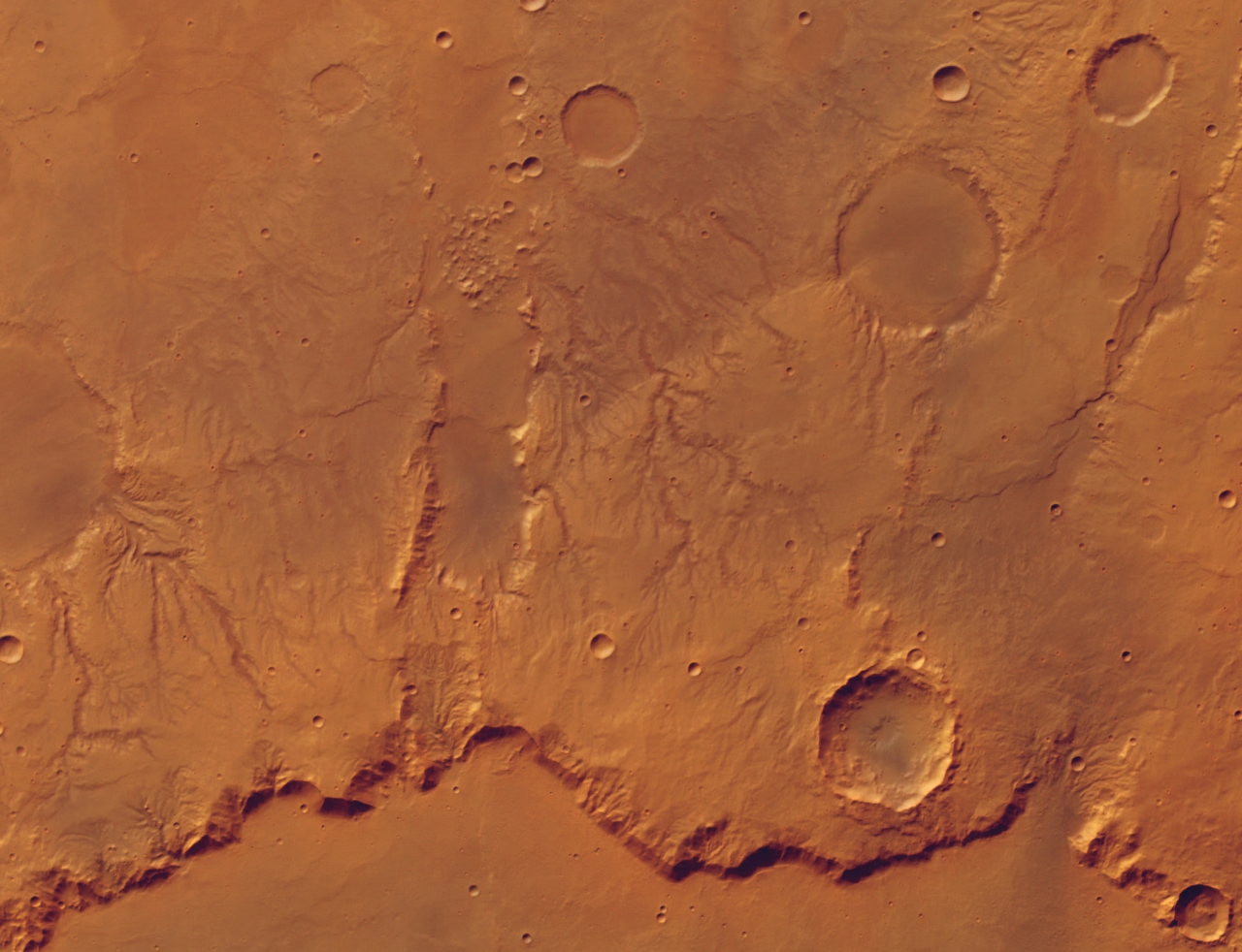 The valley system is blanketed by dark material, which was either transported by a fluid running through the channels or by wind-driven (aeolian) processes. Part of the area has been covered by slightly redder material, which implies a different chemical composition.