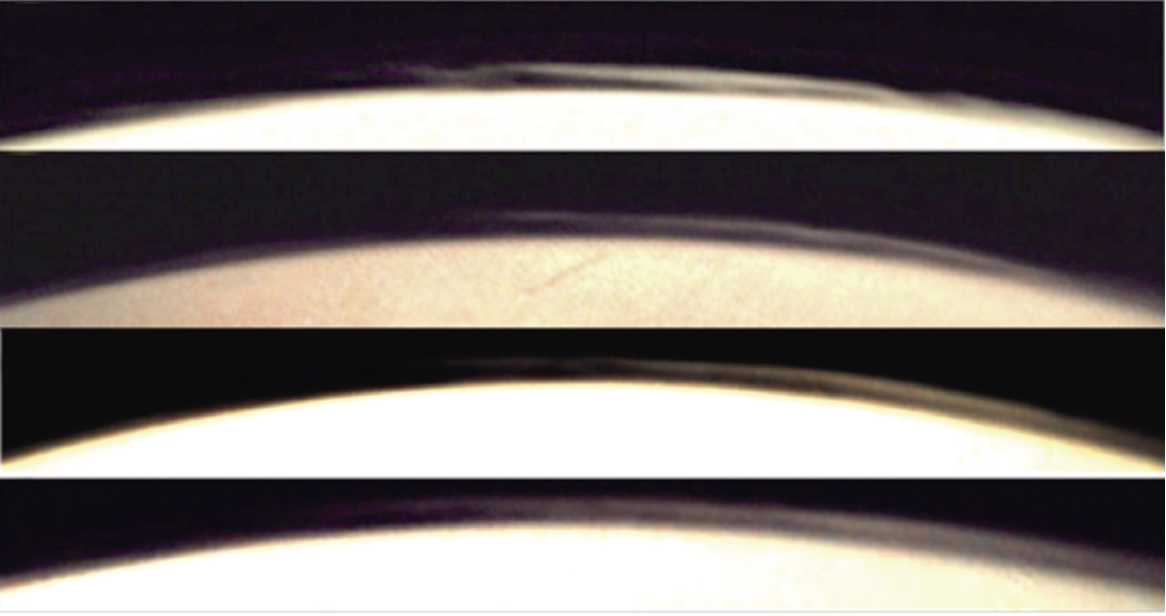 Example of a sequence of images taken by ESA's Mars Express Visual Monitoring Camera as a limb cloud came into view on 7 March 2013. From top to bottom, the images were taken at 22:48:22, 22:49:59, 22:51:32 and 22:53:07 GMT.
