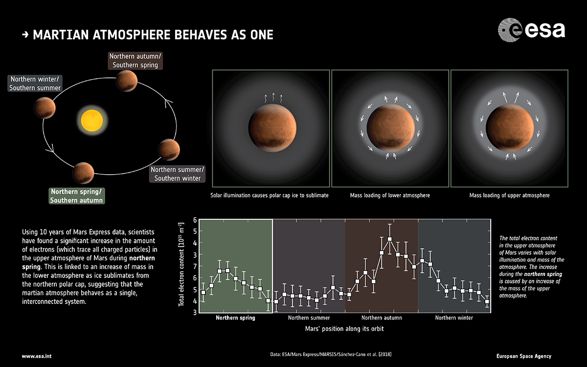 New research using a decade of data from ESA's Mars Express has found clear signs of the complex martian atmosphere acting as a single, interconnected system, with processes occurring at low and mid levels significantly affecting those seen higher up.
