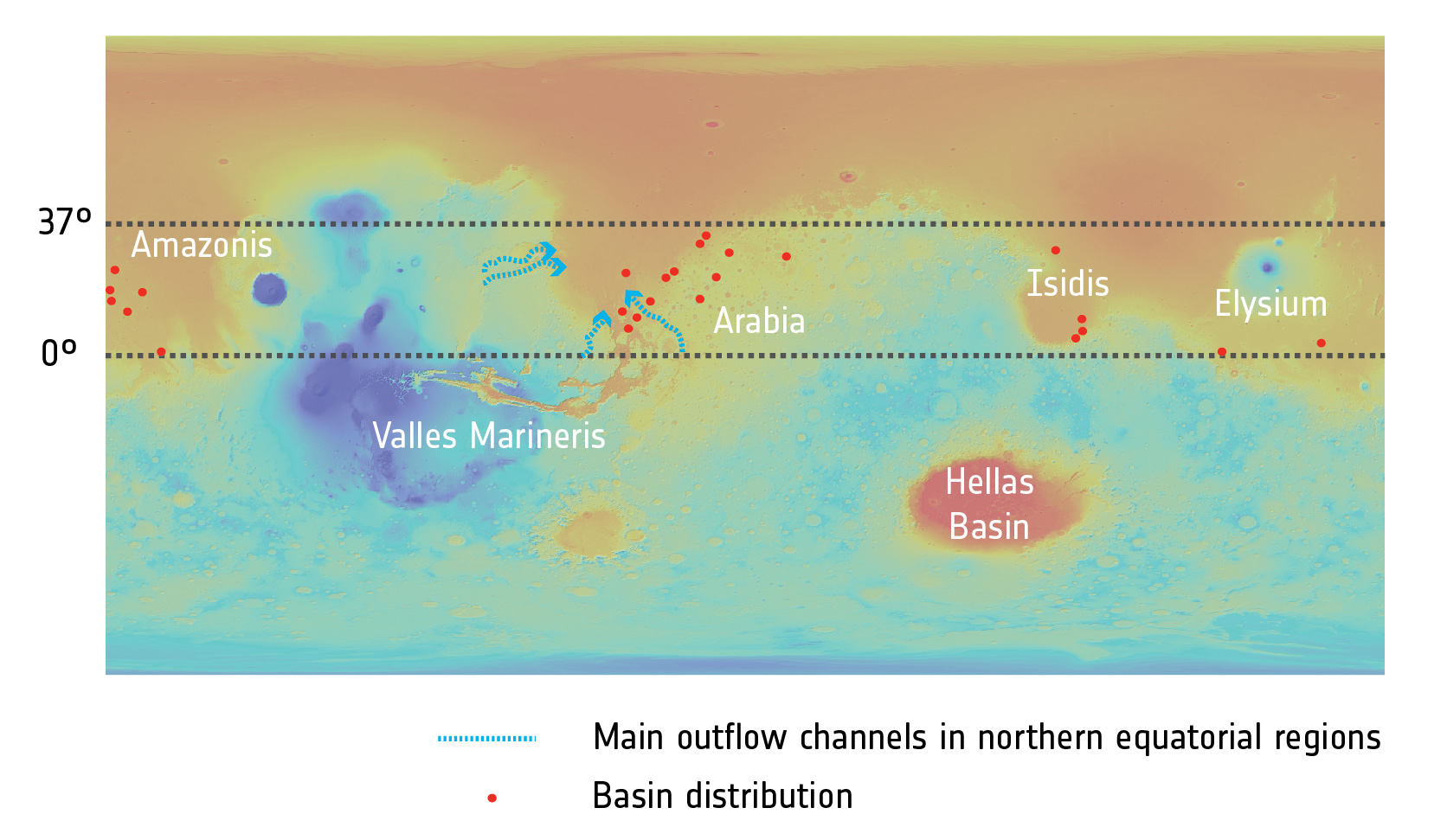 Copyright: Topography: NASA/MGS/MOLA; Crater distribution: F. Salese et al. (2019)