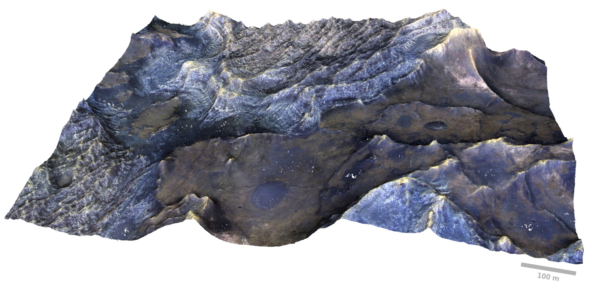 This high-resolution 3D model shows terrain on the surface of Mars in the vicinity of Jezero crater, the future landing site for NASA's 2020 Mars Perseverance rover.