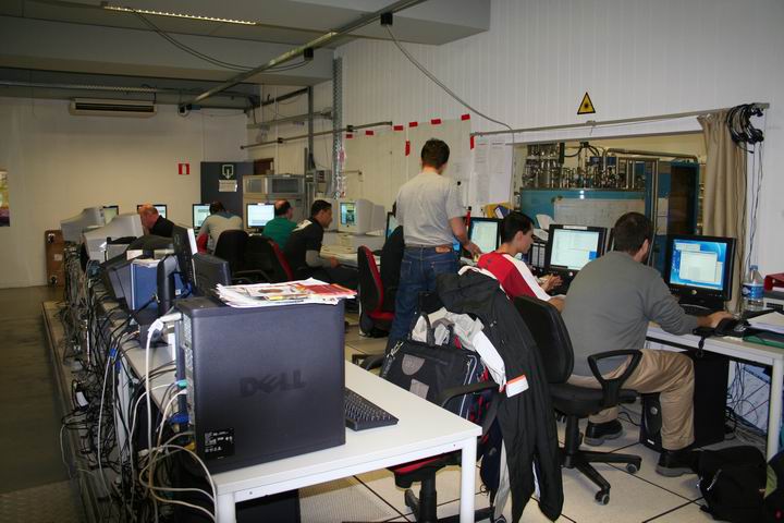 View of the control room at CSL. The control room is where the CCS (Control Check-out System) is located and from where platform engineers send the telecommands for running the test.