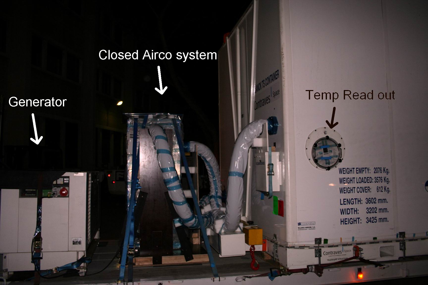 Date: 22 June 2006 Satellite: Planck Depicts: Environment control elements for transport of telescope FM Location: Alcatel Alenia Space, Cannes Copyright: Alcatel Alenia Space Show in archive: true