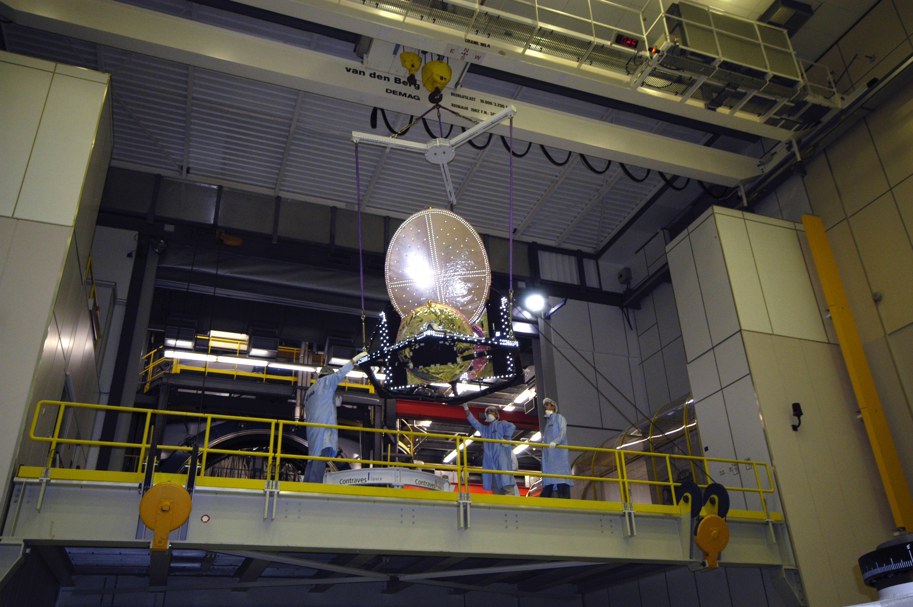 Transfer of the Planck Flight Model Telescope into the ESTEC Large Space Simulator.