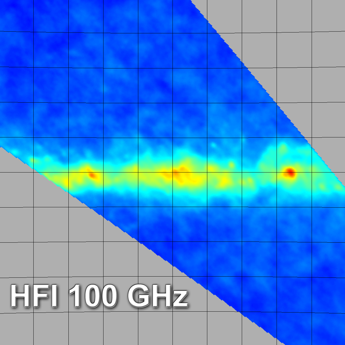 The panel above zooms in on a small part of the Planck First Light Survey, in which our own Milky Way shines very brightly. The panel show a 20°×20° map of the emission imaged by Planck's High-Frequency Instrument at 44 GHz. This is one of a series of 9 images from the Planck First Light Survey, covering the 9 frequencies to which Planck is sensitive, depicting a region where our Milky Way Galaxy shines very brightly.