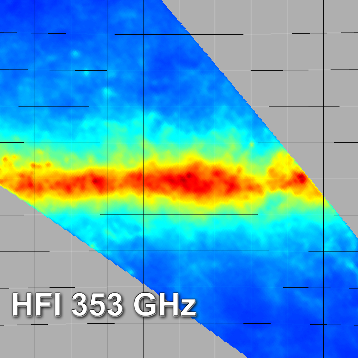 The panel above zooms in on a small part of the Planck First Light Survey, in which our own Milky Way shines very brightly. The panel show a 20°×20° map of the emission imaged by Planck's High-Frequency Instrument at 353 GHz. This is one of a series of 9 images from the Planck First Light Survey, covering the 9 frequencies to which Planck is sensitive, depicting a region where our Milky Way Galaxy shines very brightly.