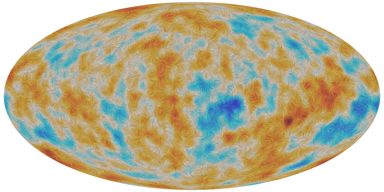 A visualisation of the polarisation of the Cosmic Microwave Background, or CMB, as detected by ESA's Planck satellite over the entire sky.