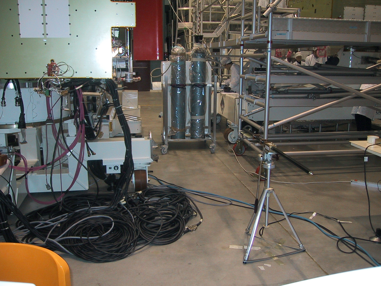 of ESA's Rosetta spacecraft subjected to a series of electromagnetic compatibility tests inside the clean room at Alenia Spazio in Turin.