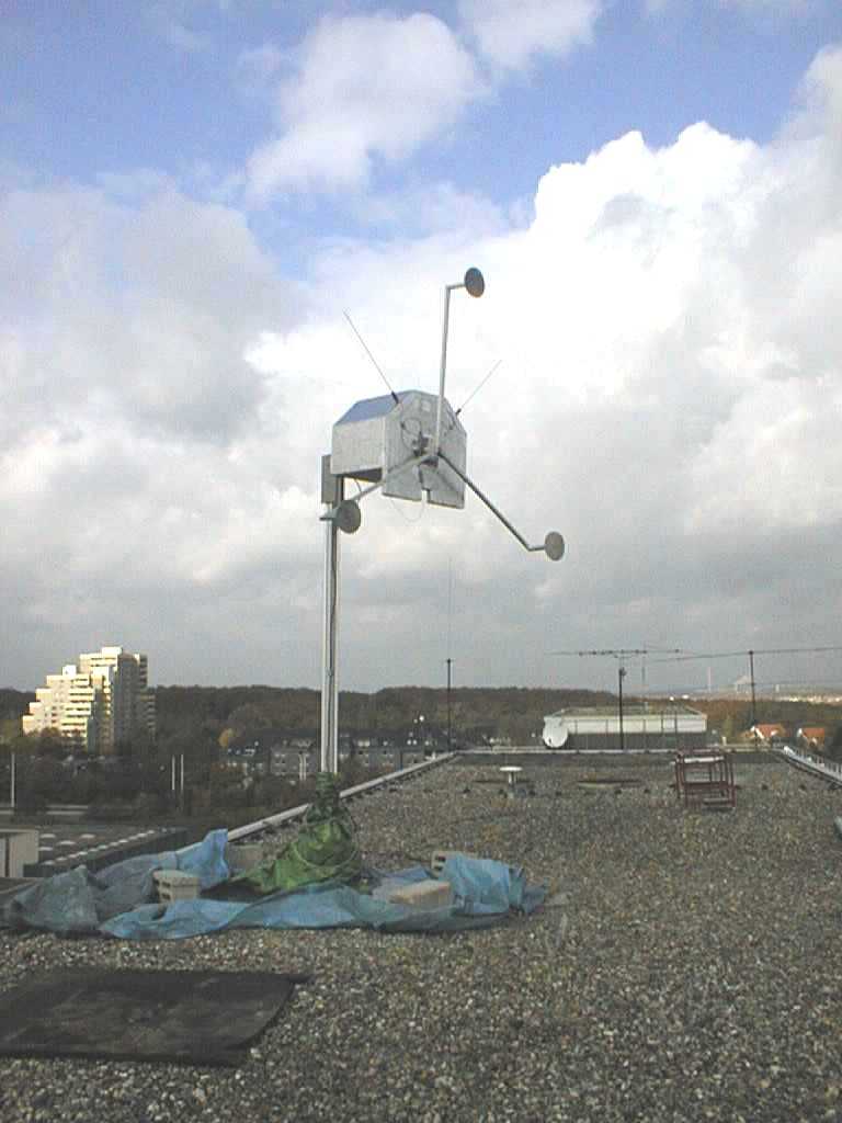 ESA Science & Technology - The mock-up lander antenna during tests on the roof of the University of Bochum