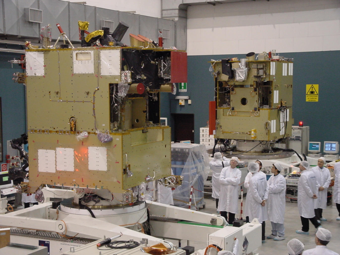 sitting side by side in the giant clean room on the premises of Alenia Spazio.