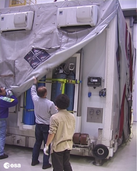 A temperature-controlled container protected the Rosetta spacecraft during its 1000 km journey which ended with its safe arrival at the European Space Research and Technology Centre (ESTEC) in the Netherlands.