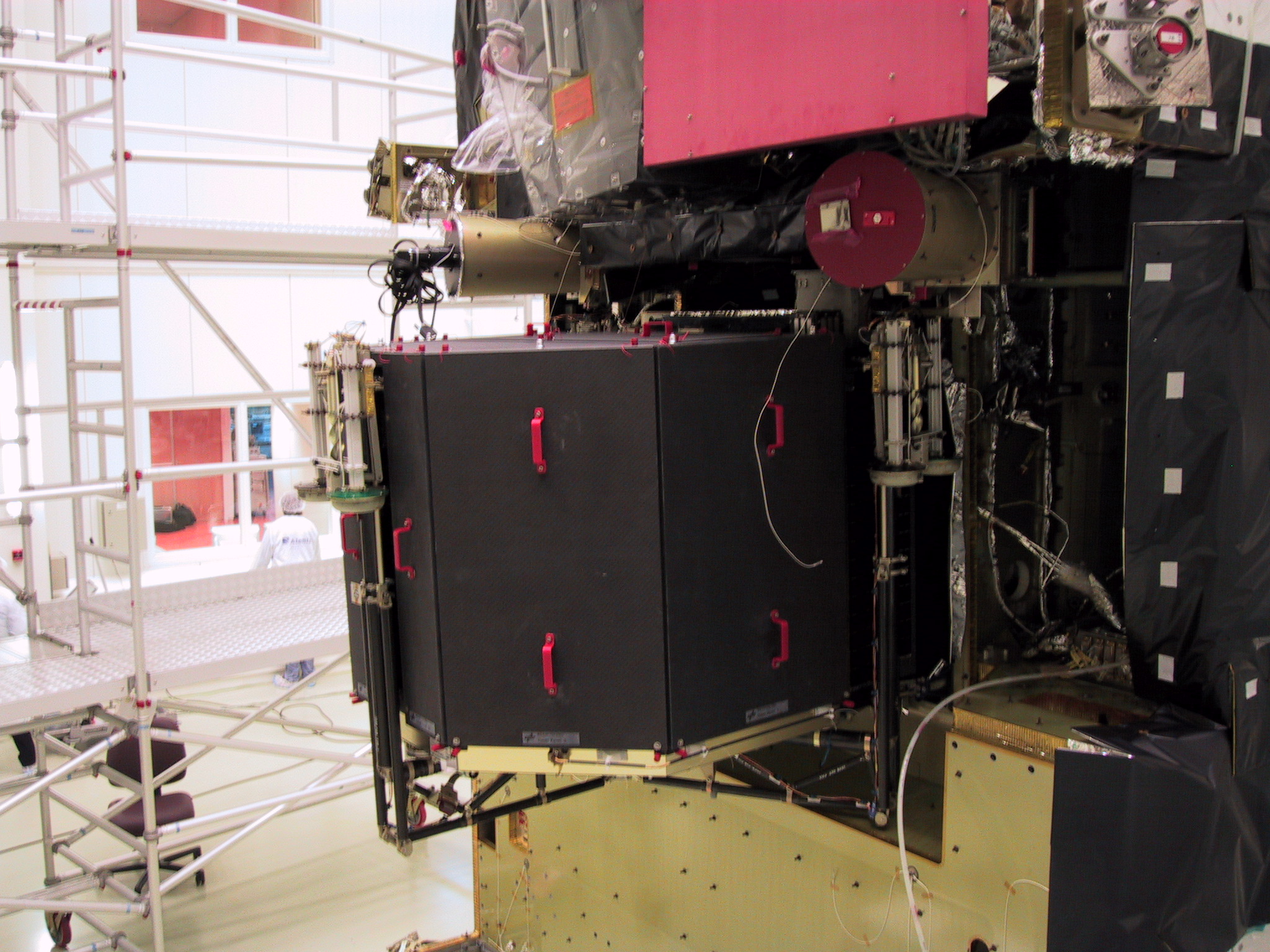 ESTEC, 3 December 2001: the Lander is now attached to the Orbiter and the spacecraft has been rotated to be in the correct orientation.
