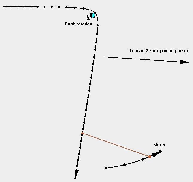 Depicts: Plot of Rosetta's trajectory during first Earth swing-by