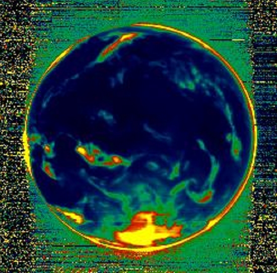 Depicts: VIRTIS False-colour image of CO2 in Earth's atmosphere