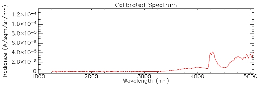 Typical VIRTIS spectrum of a CO2 enhanced region on Earth. This corresponds to the yellow areas that can be seen in the VIRTIS image "CO2 bands in Earth's atmosphere - stretched".