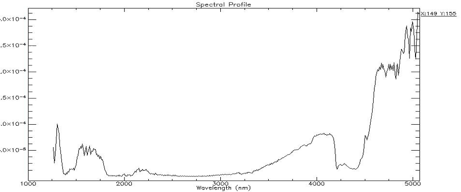 Typical VIRTIS spectrum of regions near the Earth's terminator. This VIRTIS spectrum was taken on 5 March 2005 after Rosetta's closest approach to Earth by VIRTIS from a distance of 250 000 kilometres.