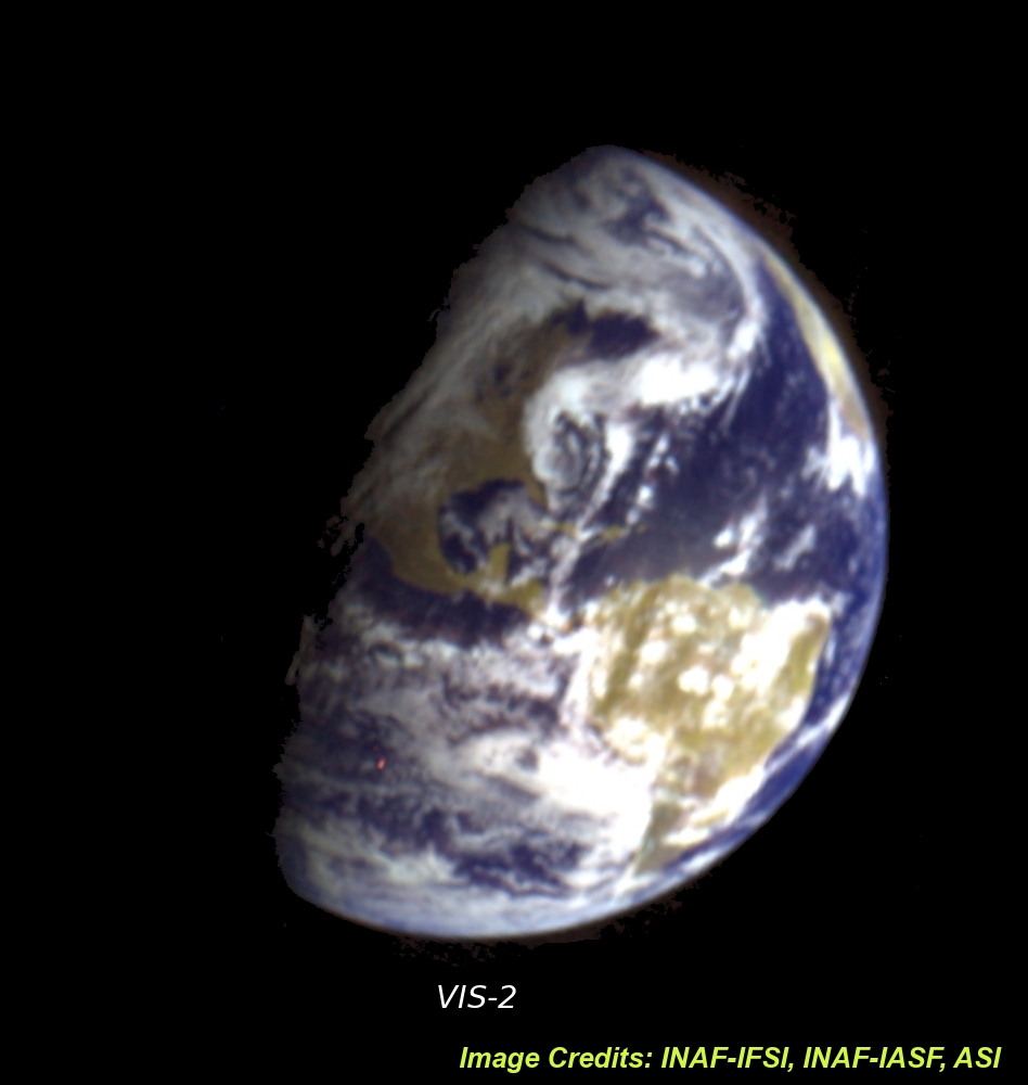 VIRTIS was one of the instruments aboard Rosetta that were active during the spacecraft's third Earth swingby on 13 November 2009. This image was taken by VIRTIS several hours after closest approach, when the spacecraft was at about 230 000 km from the Earth's surface and receding again from the planet.