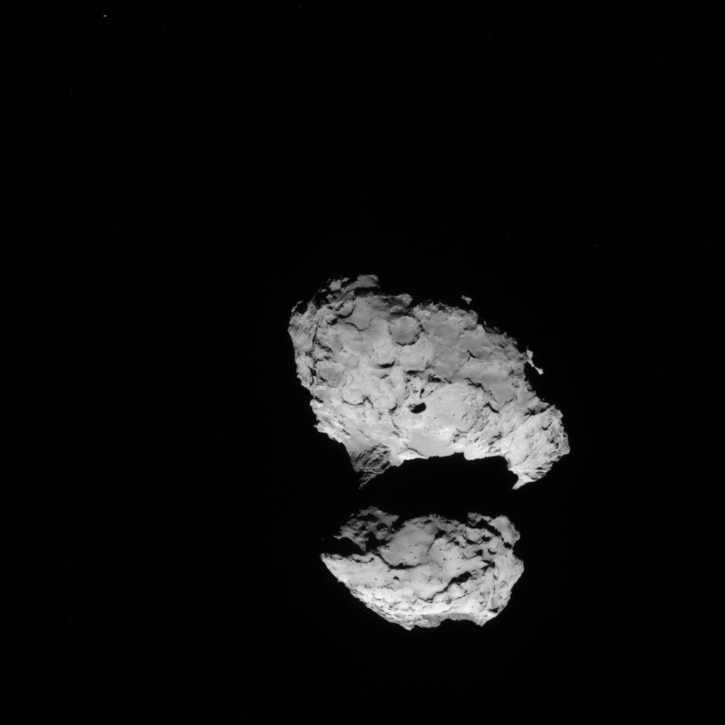 Full-frame NAVCAM image taken on 10 August 2014 from a distance of about 110 km from comet 67P/Churyumov-Gerasimenko.