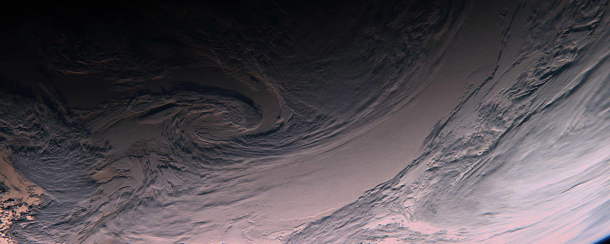 During its third and final flyby of Earth on 13 November 2009, Rosetta imaged this anticyclone over the South Pacific.