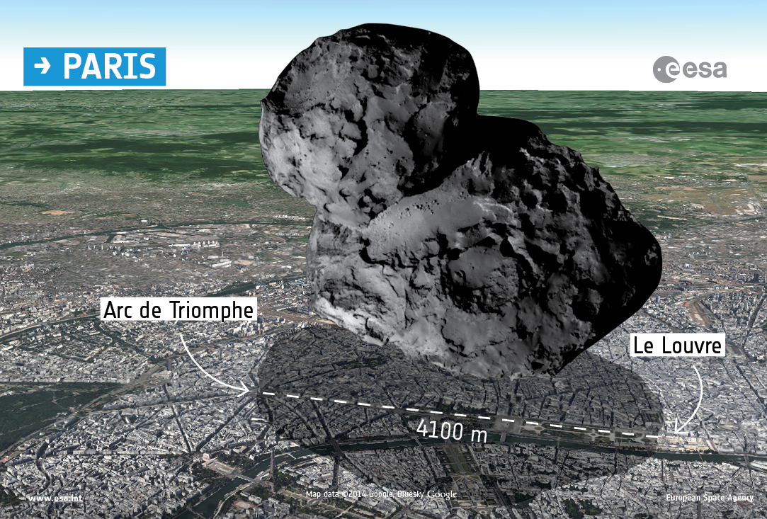 Comparing comet 67P/Churyumov-Gerasimenko with the city of Paris.