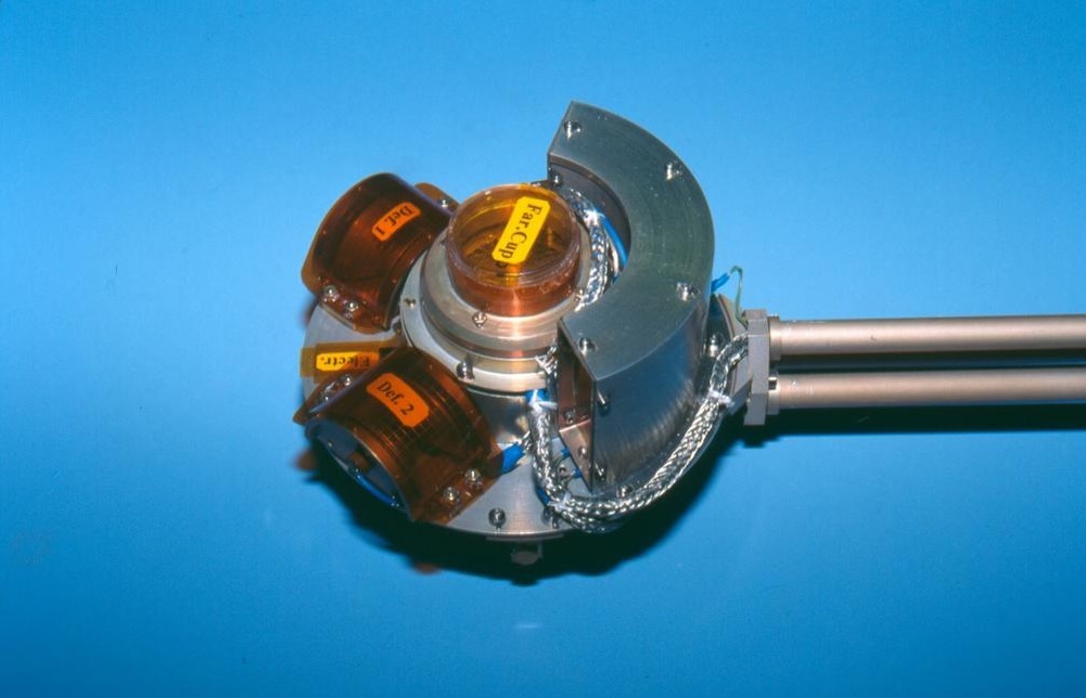 The combined magnetic field and plasma sensor of the Rosetta Lander Magnetometer and Plasma Monitor (ROMAP) instrument, mounted at the end of a small boom onboard Rosetta's lander, Philae.